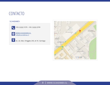 CONTACTO SCANDIMEX +56 2 2222 1576 - +56 2 2222 2745 WWW.SCANDIMEX.CL Info@scandimex.cl Av. Lib. Bdo. Ohiggins 240, of. 81, Santiago 8 WWW.SCANDIMEX.CL