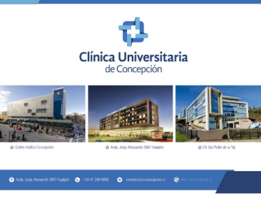 Centro médico Concepción Avda. Jorge Alessandri 2047 Hualpén CU San Pedro de la Paz Avda. Jorge Alessandri 2047 Hualpén +56 41 266 6000 contacto@cuconcepcion.cl www.cuconcepcion.cl